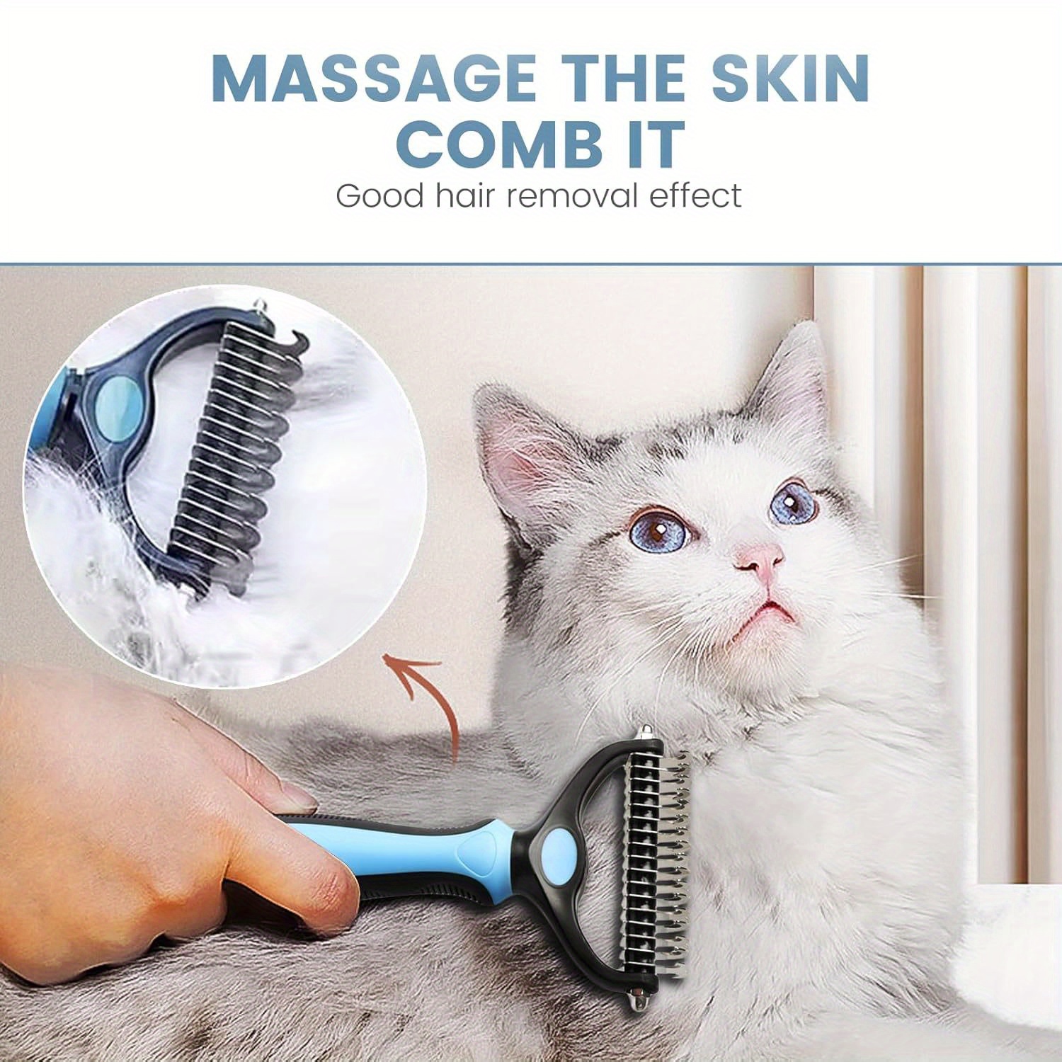 NO.3 CLEAN & MASSAGE WITH BATH BRUSH:Thoroughly clean and massage;Dog bath brush provides a comfortable massage during dry brushing and bathing, helping to keep skin and coat healthy;The dog hair undercoat brush with a perfect adjustable loop handle that comfortably fits different sized hands, firmly fixed between the palms;The dog deshedding brush is suitable for all small, medium and large dogs, ca