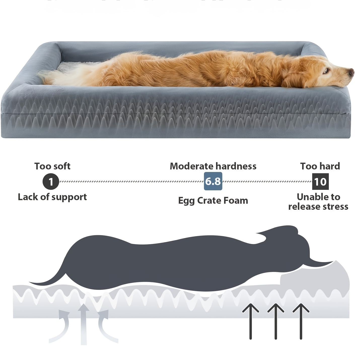 • Memory Foam Base: High-density egg crate foam evenly distributes weight, providing excellent pressure relief and reducing joint pain, making it ideal for dogs with arthritis or older pets.